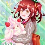 【耶耶様】のOCのポケモントレーナーを描かせて頂きました!。カロス地方のパティシエの女の子さんになります(リボンが可愛い)ブーストメッセージ凄く嬉しかったです泣、ありがとうございまっす! #ニンフィア #マホイップ #ペロッパフ #skeb #イラスト #illustration #commission