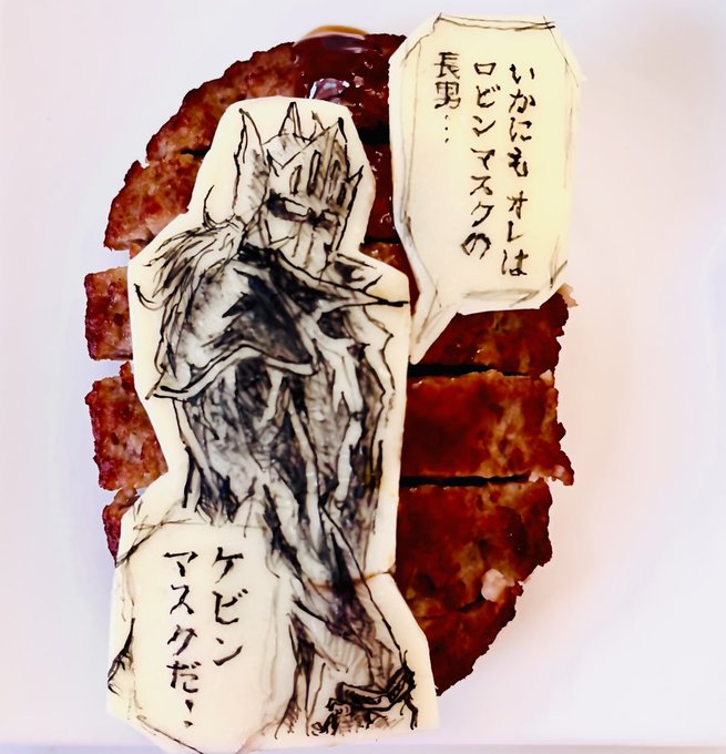 キン肉マン続きます♪笑 #キン肉マンII世 ケビンマスク チーズハンバーグです(台詞付き♪) #料理好きな人と繋がりたい #漫画 #キン肉マン #キン肉マンアニメ化 #キャラ弁 #お弁当 #ロビンマスク #イラスト #アニメ #おうちごはん #キン肉マン好きな人と繋がりたい