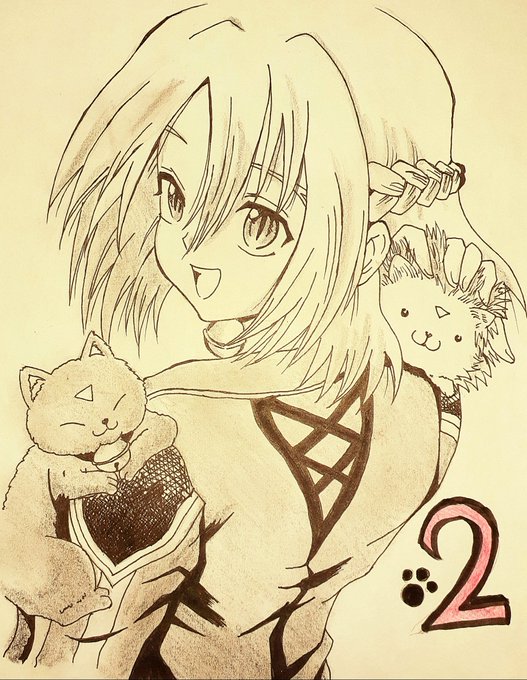 応援イラスト2枚目完成!! ちょっとギリギリになっちゃいましたが、2人目は「2(ニャン)」という事でルルスちゃんにしました♪ …危うく2回目にしていきなり落とす所でした…; (=`ω´=) #君は008 #008応援強化ウィーク #008キャラを毎日描いてみる #落書き