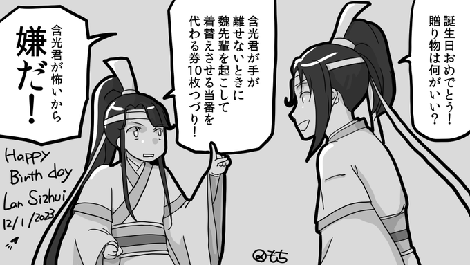 #蓝思追0112生日快乐 #0112藍思追生誕祭 #HappyLanSizhuiDay 堅実な贈り物を希望する藍思追と、命が惜しいからいやだと断る藍景儀。 無駄に嫉妬深くなければ含光君ではない。その22。 #魔道祖師落書き