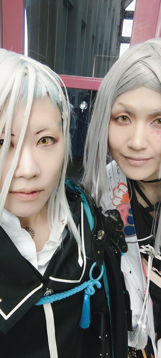 ⚠コスプレ おそくほーーー 本日政府刀全振り揃った併せでした❤️ 楽しかったー 3枚目はほしこさん作の政府印のタトゥーシールと政府支給の回復薬です 古今ちゃん▶べにおさん #0212政府刀総顕現