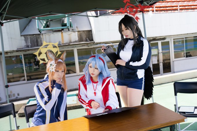 cosplay* Blue Archive 晄輪大祭実行委員会、発足です! (ちゃんとやっていけるのかしら……?) ハスミ:くろた / マリー:こなつ アコ:ヤキイモ / ユウカ:栃名 📸ねこむろ @dw_nkmr #0214キヴォトス大運動会 #ブルアカ