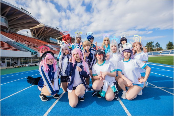みんなの自撮り集合🤳 陸上競技場を借りて、ほぼ全員2着やって生徒26人の併せでした(すごい) 主催のCOMさんむむさんありがとうございました🥰!! #0214キヴォトス大運動会 #0214키보토스황륜대제 #ブルアカ #블루아카이브