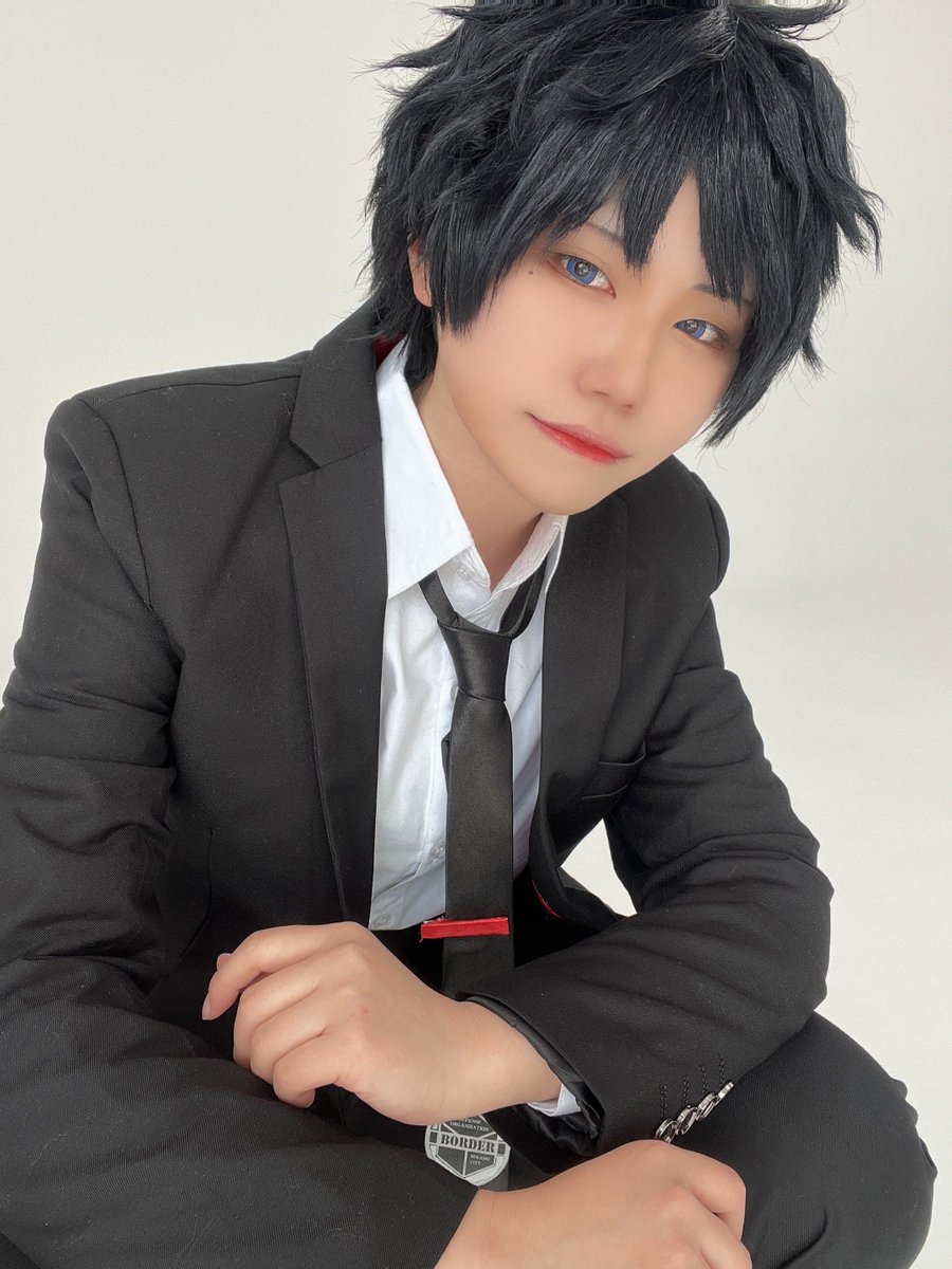 ⚠️cosplay ワールドトリガー/影浦雅人 スーツ衣装 WT 📷→さかもとさん @pro40115 (1枚目) 📷自撮り→27ちゃん @tuna_kun27 (2枚目) #0219紳士服のボーダー