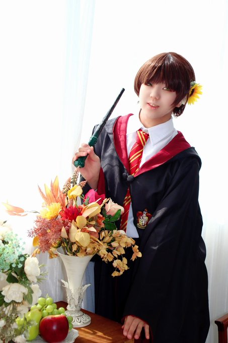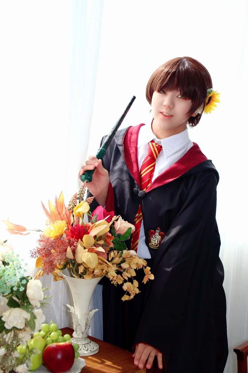 〖コスプレ/創作ホグワーツ生〗(🦁寮) ⚠️創作キャラ⚠️ 🌻 Hélianthe・Fleur🌻 「ねぇ、みて!可愛いお花でしょ?」 速報用に頂いたのでさっそく!!いい光の入り方してる🥰🥰 📸→ひすいさん(@hisui___w) #0223ホグワーツ4寮あわせ #かんちゃんコスプレ記録