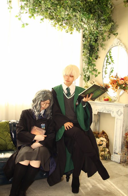 cosplay/コスプレ Harry Potter創作_ Slytherin/Ravenclaw "𝘛𝘢𝘬𝘦 𝘢 𝘳𝘦𝘴𝘵" #0223ホグワーツ4寮あわせ 📸▶︎@hisui___w さん 🦅▶︎@maoosama320 さん