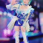 #コスプレ あうるちゃんのテクノマジカルブルー全身❤️ 模様のカットデザインは、 まつりちゃんが全部つくってくれたよー スペシャルサンクス(@you_nagahoshi_z ) 生地は、エナメルいっぱい使って テカテカキラキラ!! #0311奇跡の降るステージ