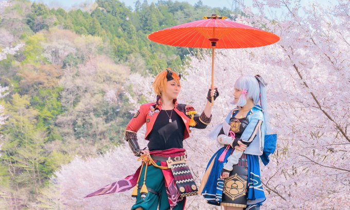 【原神.cos】 ─────大切な友人。 ️ ️ ️ ️ ️ ️ ️ ️ Photo: @_futoago Thoma: @became_a_ghost Ayaka: @wataame_O_O #0402稲妻千本桜