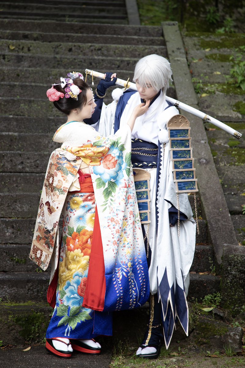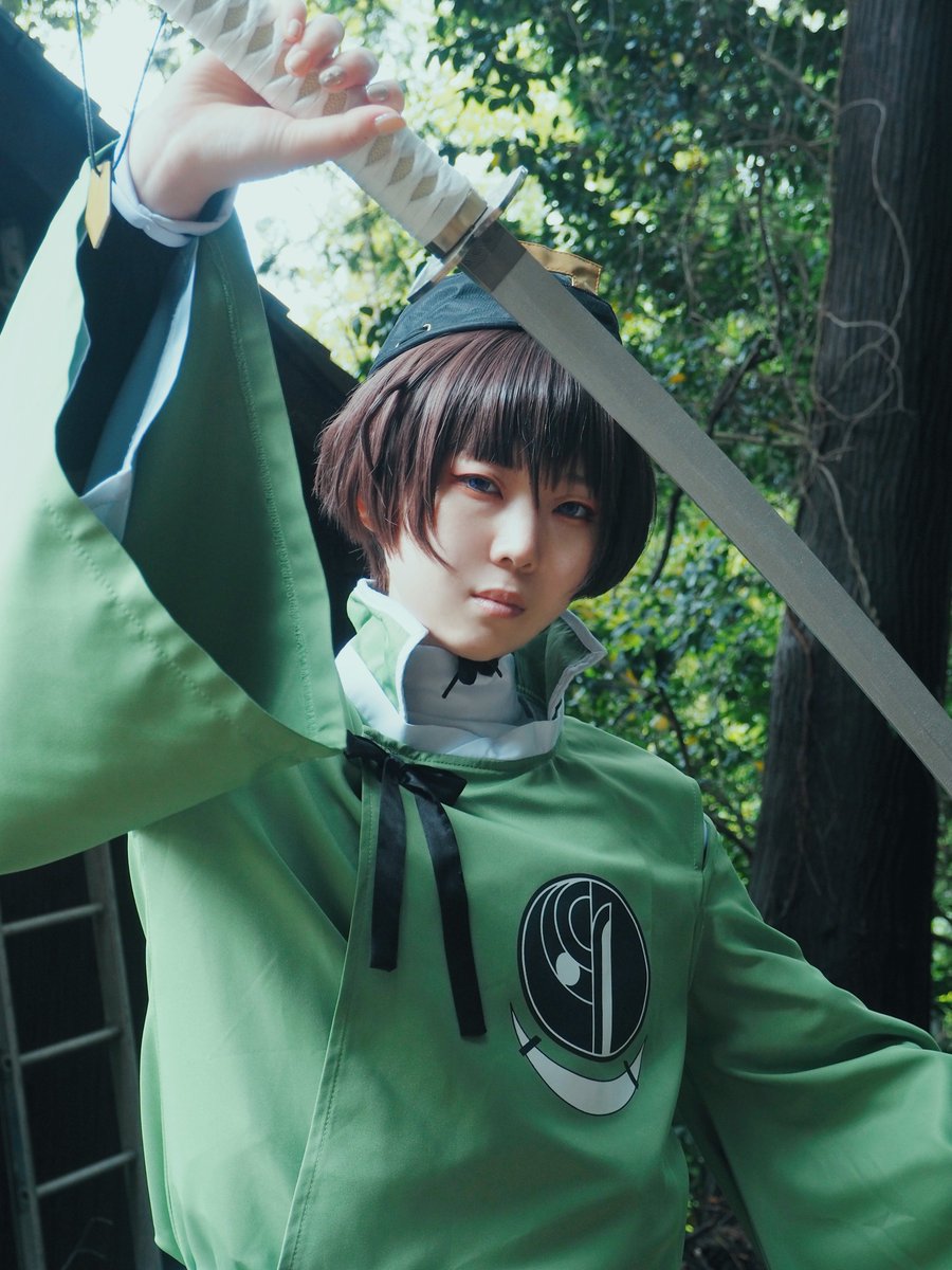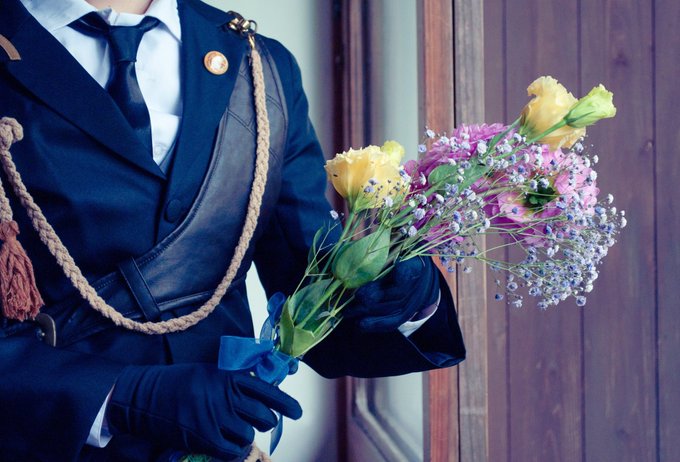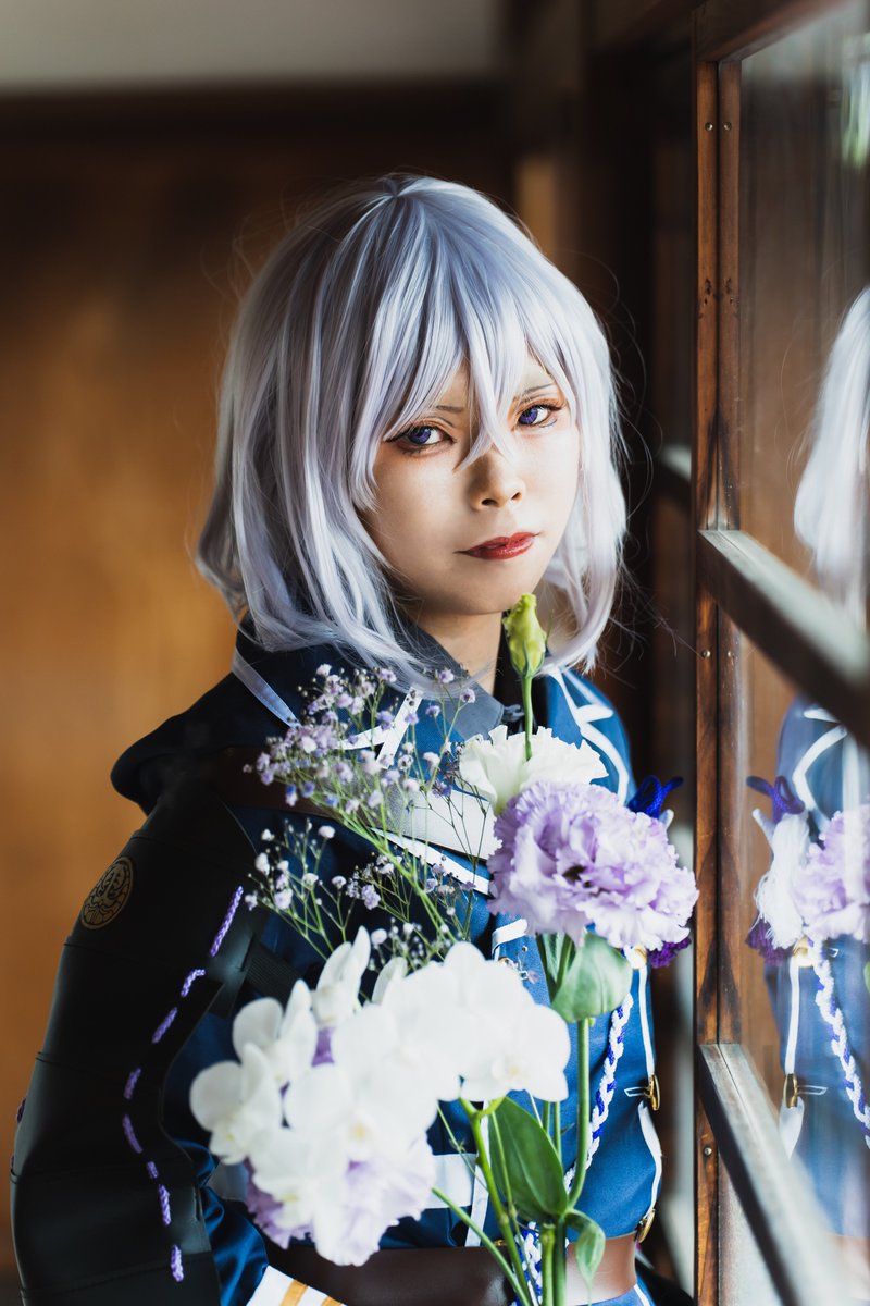 Cosplay:博多藤四郎 -粟田口 ブロマイド- 『短刀は寝転びと花束持ちの2種 脇差、打刀、太刀は花束持ちの1種を絶賛好評発売中(※してません)』 #0415つるゑ本丸 📸imasyuuさん(@imasyuu_) 発端は僕です。