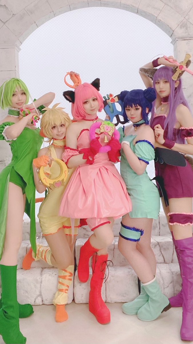 ※コスプレ 🎀東京ミュウミュウ🎀 ミュウプリン🍮🙊 みんな揃って、めちゃくちゃ可愛かったのだ〜っ🙈♡ 身長差を見て欲しいのだーっ🙊 プリンちゃんの肌の色になるように、私が地黒なことを活かしてほとんどファンデーション塗らなかった🤣笑 #0424東京ミュウミュウ併せ 🍮