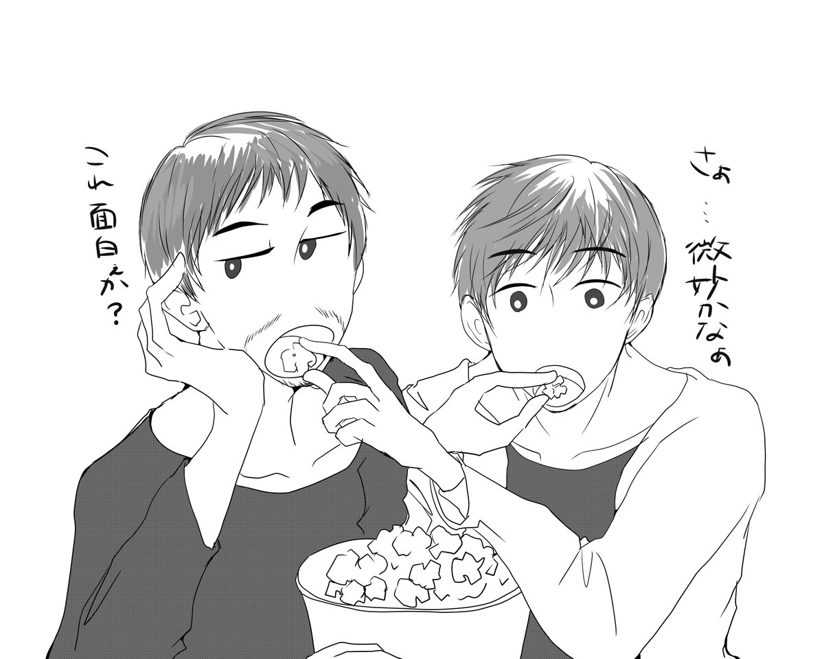 『この映画面白いのか?』 「さぁ、オススメされてたから選んだけど正直微妙かな」 お互い息をするように食べさせ合いしててくれ… (無意識) お題である食べ物まずそう問題が発生しました… #0514K暁ワンドロ