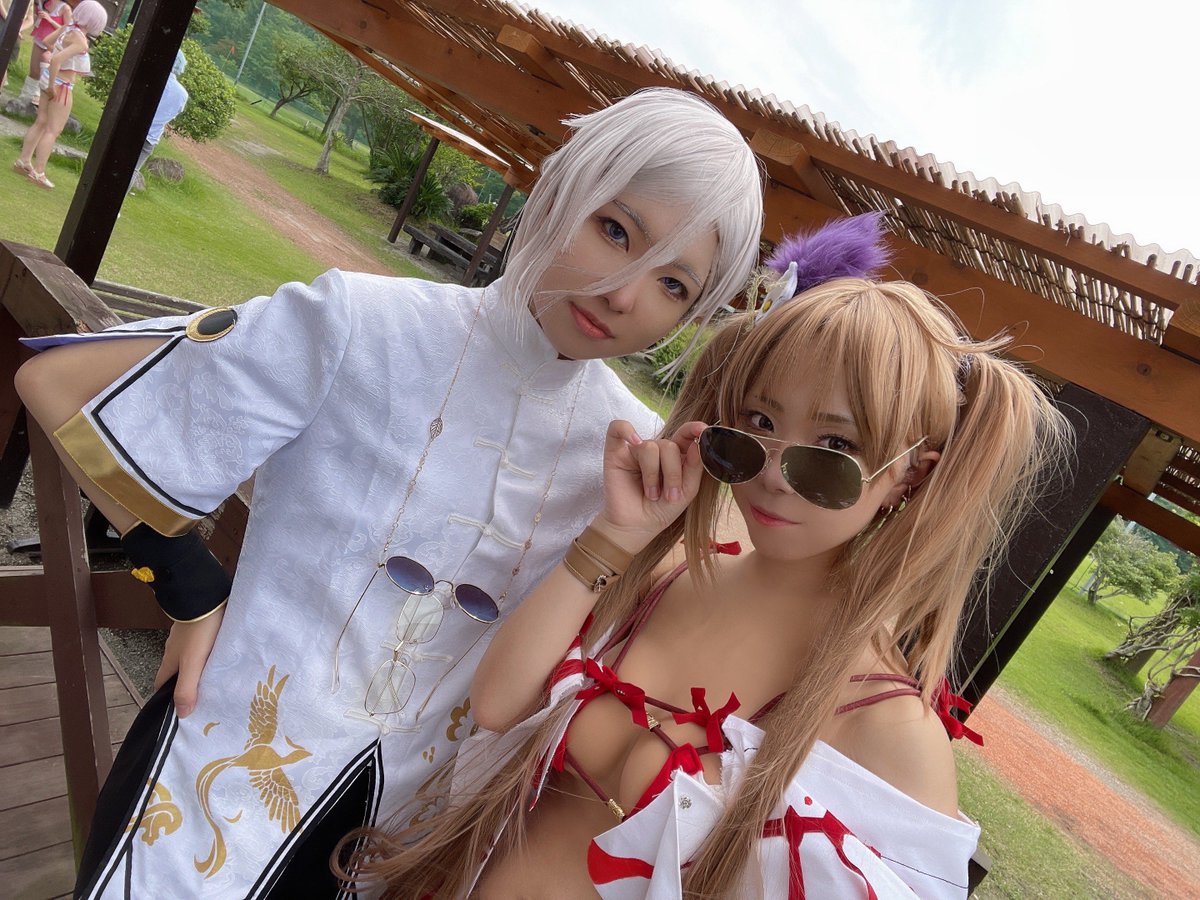 #0607サマキャンフードファイト 虞美人の水着で召喚されてました✌🏻💗 衣装全身イラストから構造読み取るのかなり苦戦したけど思ったシルエット出せてよかった🥰 BBQ楽しかったぁ、ちゅん、めんばーのみなさんありがとうございました❣️ 大好きな蘭陵王と😘