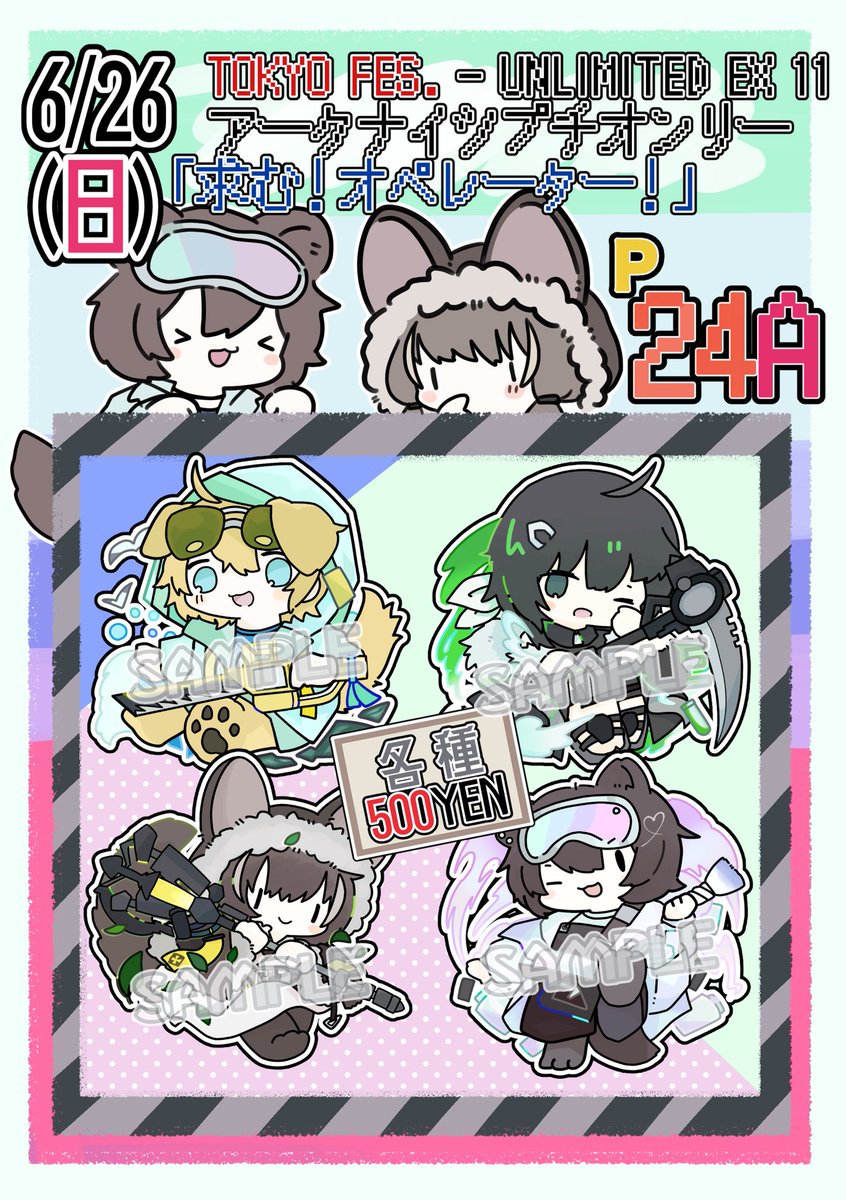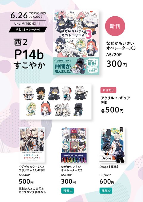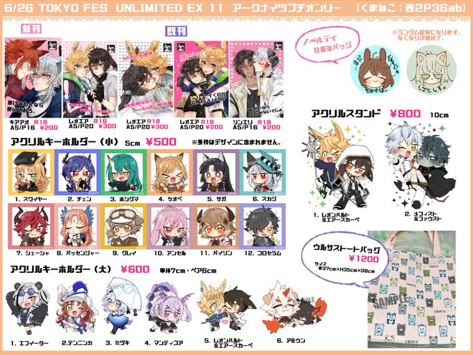 6/26(日) TOKYO FES UNLIMITED EX 11 アークナイツプチオンリー スペース【西2:P36ab】 本とグッズ頒布致します。よろしくお願いします~! (画像サイズ大きいので拡大参照) ペーパーもあるので是非🐰 本のサンプルやグッズの実物等はリプにて。 #0626求むオペレーター