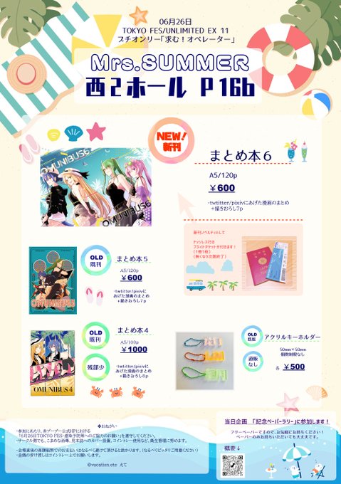 【イベント告知】 (1/4) 06月26日 東京ビックサイト TOKYO FES/UNLIMITED EX 11 プチオンリー「求む!オペレーター」 Mrs.SUMMER スペースNo.【西2ホール P16b】 お品書きです! よろしくお願いします。 #0626求むオペレーター #イベントGO_赤ブー akaboo.jp/event/item/201…