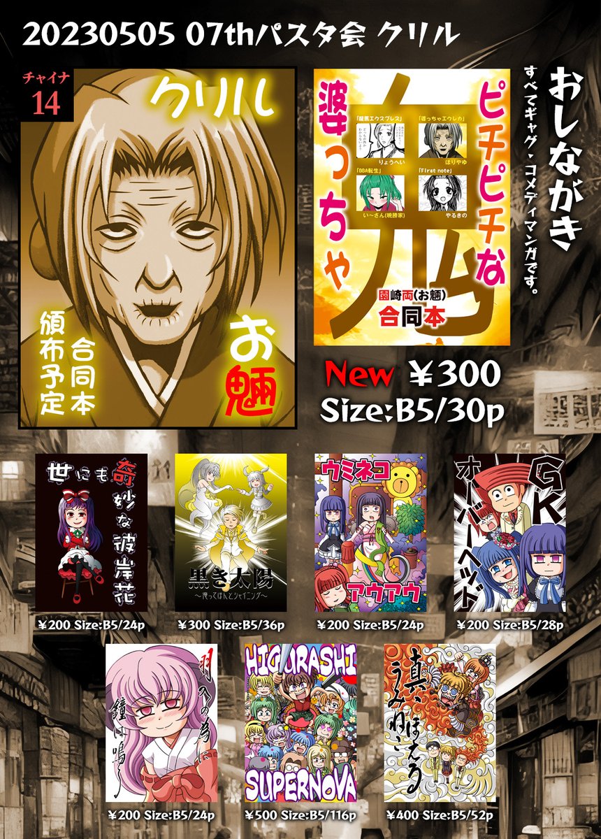 #07thパスタ会 #ひぐらしのなく頃に #同人誌 #拡散希望 5月5日07thパスタ会お品書きです。 既刊とステッカーを販売します。 チェックお願いします! ※写真と現物は少し異なる場合がございます。ご注意下さい。 同人誌サンプル pixiv.net/artworks/10528…