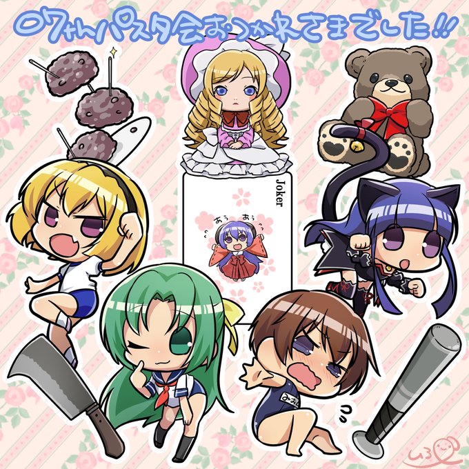 🍝5/5に開催された #07thパスタ会 にてひぐらしのなく頃にブースの射的イラストを描かせていただきました〜!🎯✨即売会+竜騎士07先生のトークショーなどもある豪華な内容で大盛況の素敵なイベントでした🌹マトのイラストもとっっても楽しく描かせていただきました!ありがとうございました🥰✨ twitter.com/10th_rgd/statu…