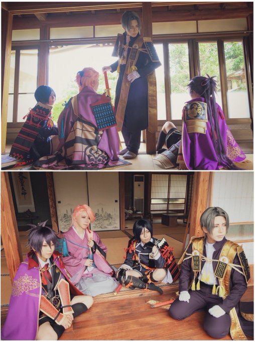 ⚠️Cosplay Photo 刀剣乱舞/織田刀 束の間の休息。 へし切長谷部:いのうえ(@ce_eu 宗三左文字:咲空(@yobiganai 薬研藤四郎:だいさく(@DaisakuK1016 不動行光:AKira 📷:れんが(@renga58_pht2 #0812織田なのだ