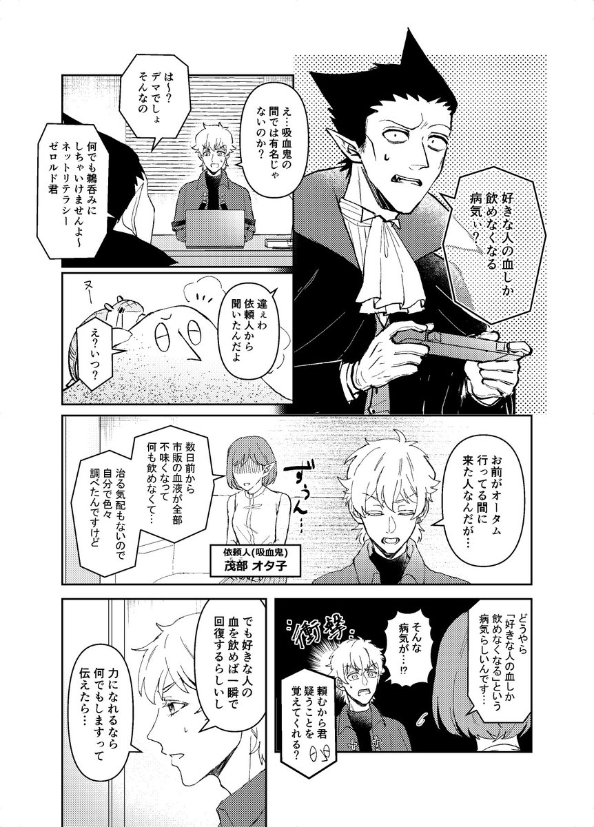 #0904DRweb 9/4ドラロナ新刊サンプル(1/2) 片想い中のドが好きな人の血しか飲めない病気にかかって吸血欲に葛藤するお話です。 ※ツリーにサンプル続きあり 支部▶pixiv.net/artworks/10082…