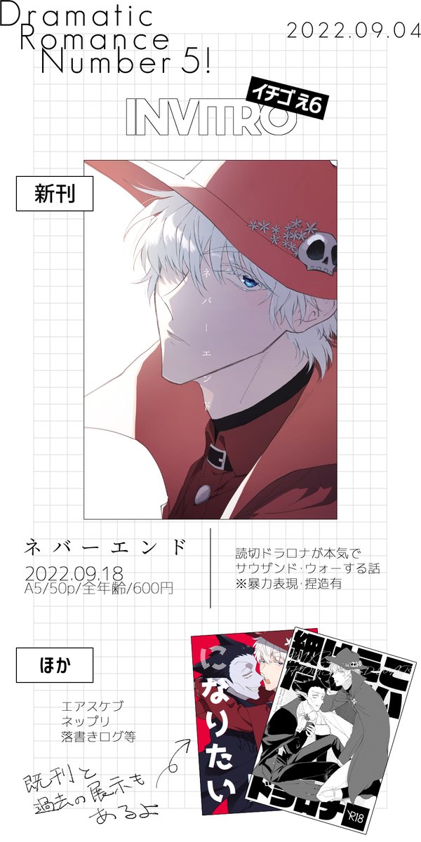 9/4のお品書きです よろしくお願いします!! 新刊サンプル→pixiv.net/artworks/10060… 既刊サンプル→pixiv.net/artworks/99131… #0904DRweb