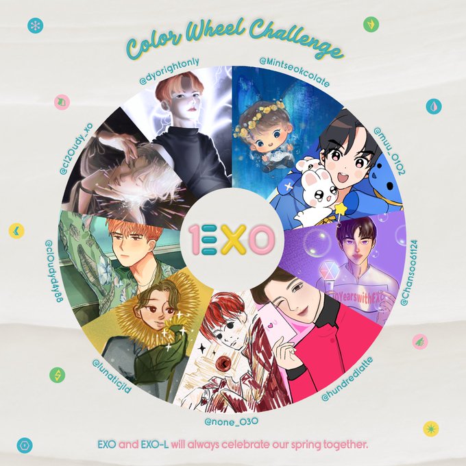🎨 #1ΞX0 Color Wheel Challenge 🌈 🤍 EXO and EXO-L will always celebrate our spring together. 🧑🎨 Artists @dyorightonly | @Mintseokcolate | @muu_0102 | @Chansoo61124 | @hundredlatte | @none_030 | @lunaticjld | @cl0udyd4y88 | @cl20udy_xo #10YearswithEXO #EXO10thYearAnniversary
