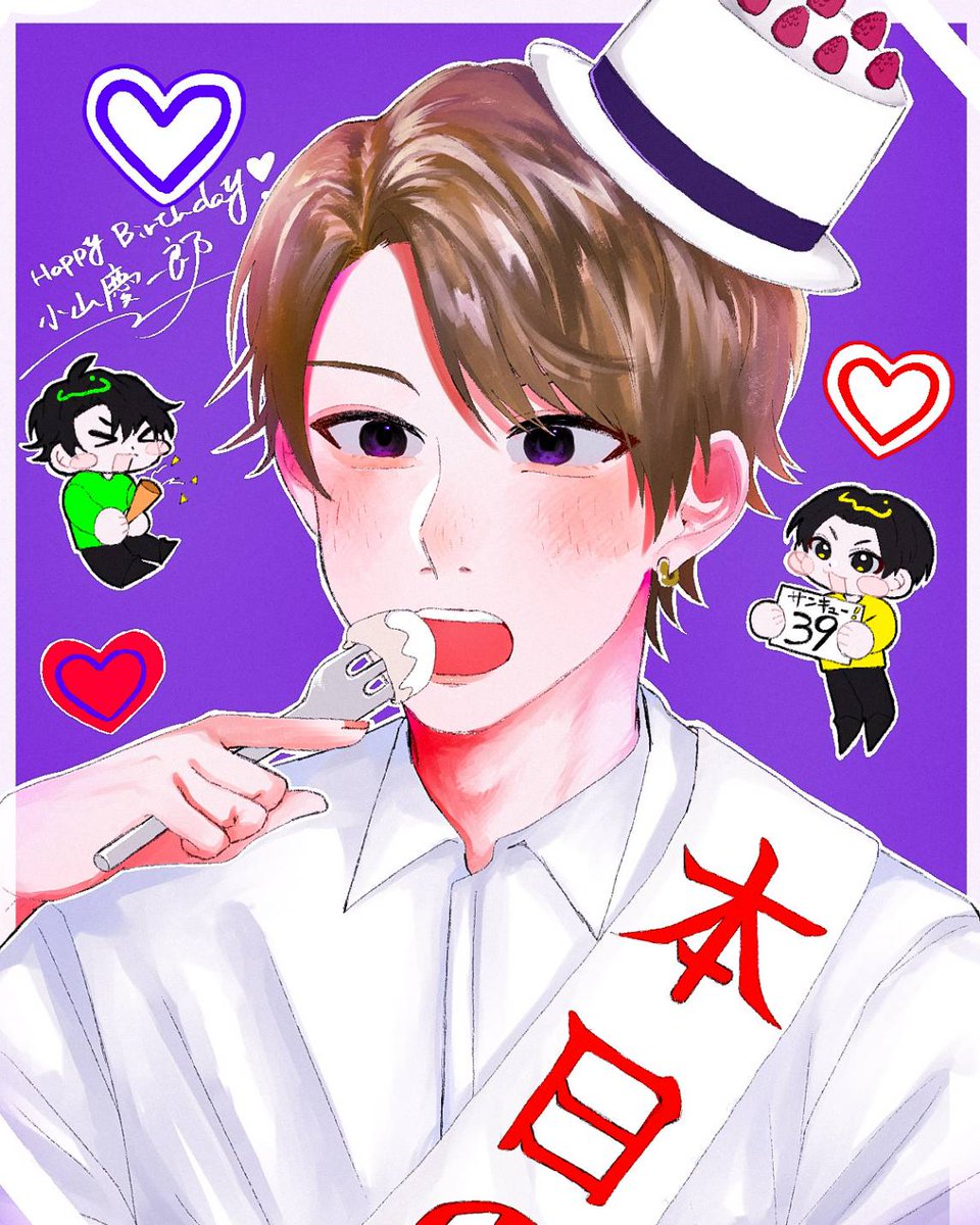 お誕生日おめでとうございます! 笑顔の絶えない1年に なりますように!!!💜 今年も だいすき!!!💜💛💚 #小山慶一郎誕生祭2023 #1年に一度の魔法特別な日 #NEWSでお絵かき #コピック