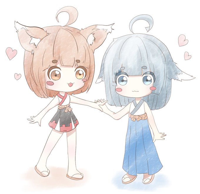 ちびっこ天狐姉妹の ビフォーアフター∩^ω^∩💕✨🎉 少しは成長してるかなぁ😳💦✨ 昔の絵柄も好きなのです☺️🎉 1枚目:1年前🐑 2.3枚目:最近🦊⛩ #イラスト #1年間で絵が上達してるか見てみましょう