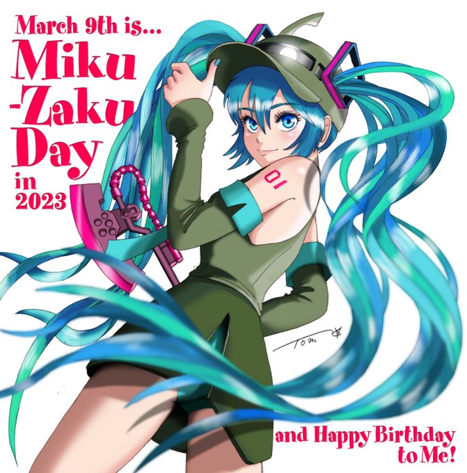 3月9日は #ミクの日 #ザクの日 そしてガガーリンとミーちゃん(ピンクレディ)と木梨憲武氏とアメリゴ・ベスプッチと⋯ σ( ̄ㅂ ̄*) 私の!!🎂誕生日である♬ ⋯たしかに一枚で挙げた方が見栄えがええなコレ #1年間で絵が上達してるか見てみましょう #1日一点とにかく描く #今日は何の日 #ミクの日2023