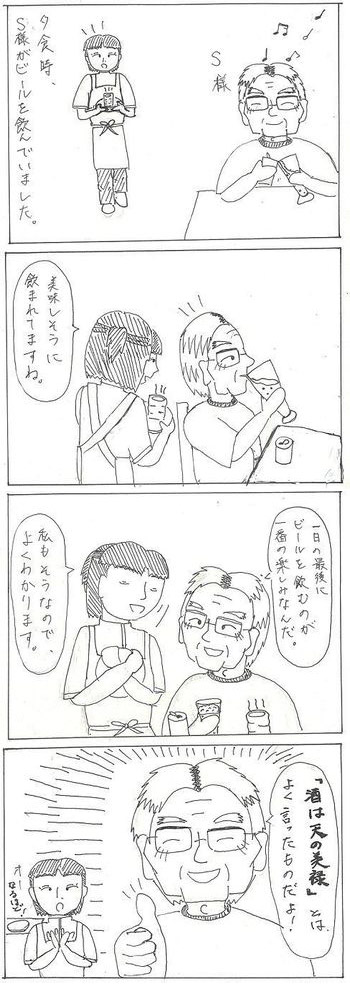 『酒は天の美禄』 -グッドタイムリビング 4コマ漫画シリーズ- 介護スタッフの榎本が、ご入居者との日常を4コマ漫画でお届け! gtl-daiwa.co.jp/guesthouse/gtl… #1日の終わりに #家飲み最高 #漫画が読めるハッシュタグ #GTL4コマ漫画 #有料老人ホーム #グッドタイムリビング千葉みなと駅前通
