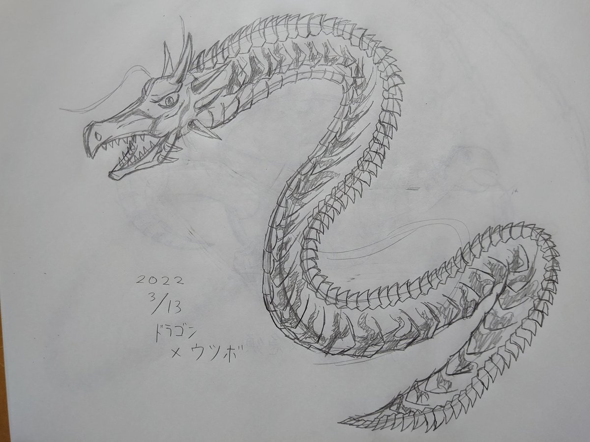 #1日1ドラゴン ドラゴン×ウツボ ウツボは歯が鋭いので牙を角としてデザインしました。 #イラスト好きさんと繋がりたい #絵描きさんと繋がりたい #アナログイラスト #ドラゴン絵 #クリーチャー