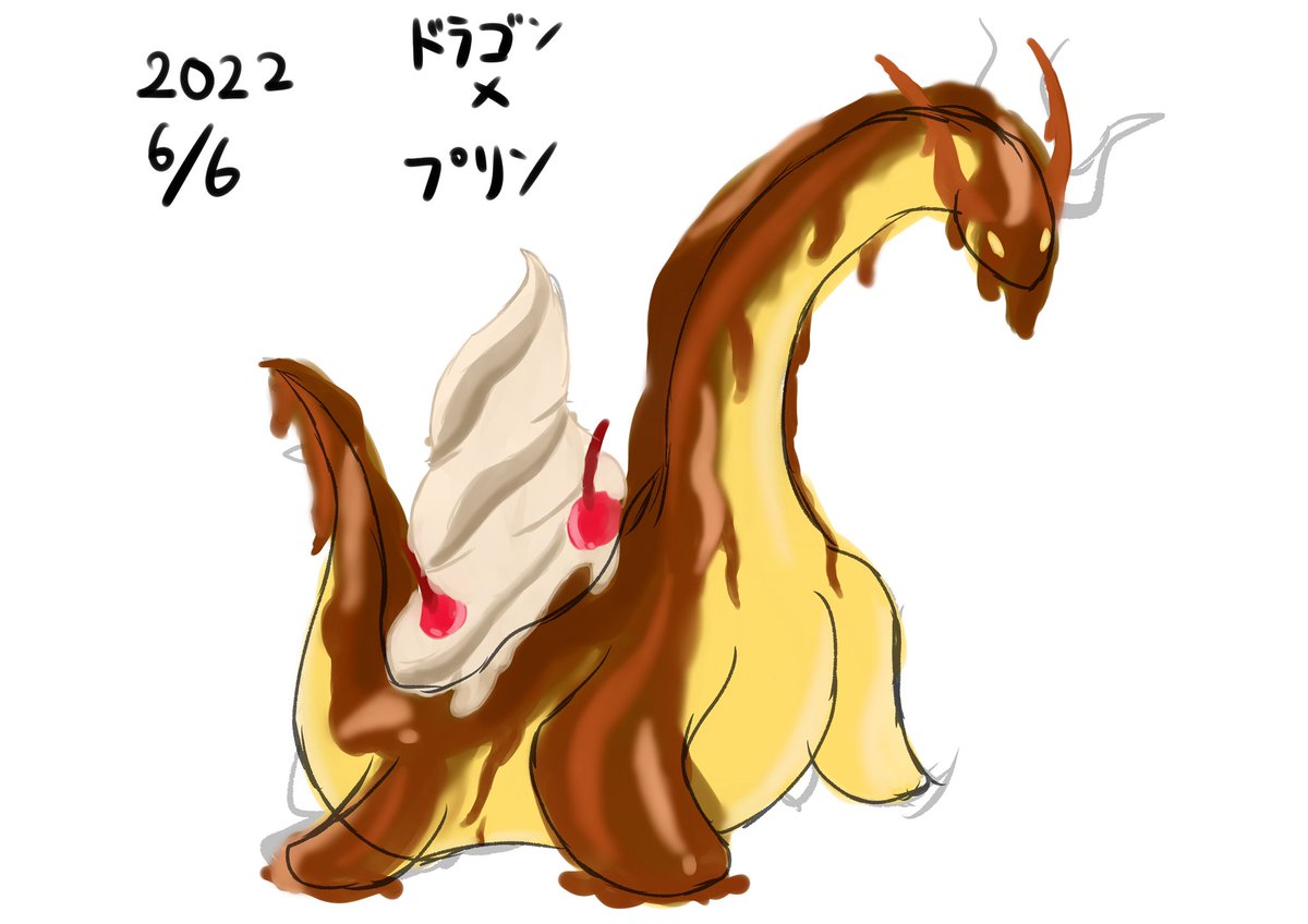 #1日1ドラゴン ドラゴン×プリン 糖分高そうだけど甘くて美味い。しかし中々食わせてくれない。 しばらくは練習でデザインでやってこうかと、水彩塗り難しいけど頑張ろ。 #イラスト好きと繋がりたい #絵描きさんと繋がりたい #ドラゴン絵 #イラスト