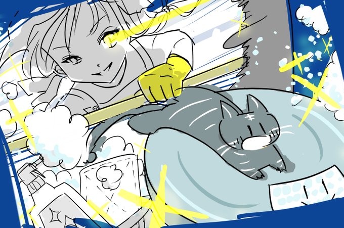 ワンドロ大会参加させていただきました!今回のテーマは大掃除で大忙しです。お母さんの本気大掃除を表現してみました!相棒はもちろんルン○さん #1時間でさいとうなおきを倒す #ワンドロ #大掃除 #お母さんカットイン