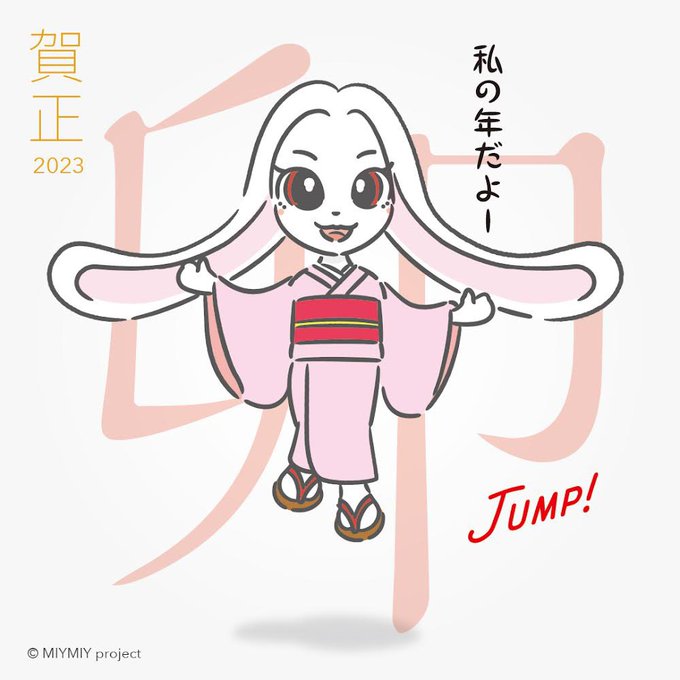 あけましておめでとうございます!🎍私の年です🙌🐰みなさまがトラブルを飛び越えて、夢に向かって飛躍する一年になりますように!💓 #一次創作 #冬の創作クラスタフォロー祭り #キャラクター #イラスト好きと繋がりたい #絵描きさんと繋がりたい #うさぎ #ミィミィ #MIYMIY #1月1日 #元旦 #お正月