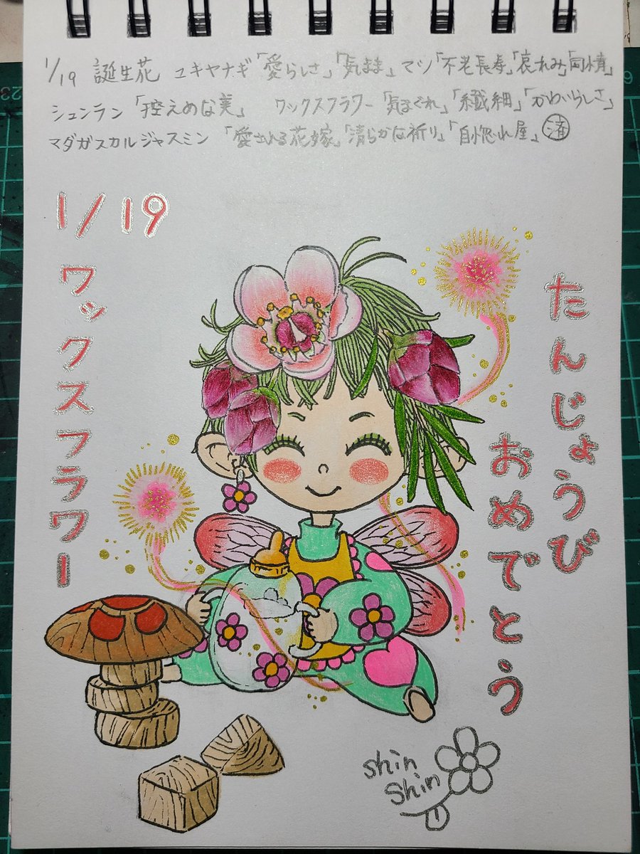 1月19日生まれの方、 お誕生日おめでとうございます。 1/19生まれの方に届くと嬉しいです。 力が漲ってくる1日となりますように。 #誕生日 #happybirthday #1月19日 #1月 #ボールペンイラスト