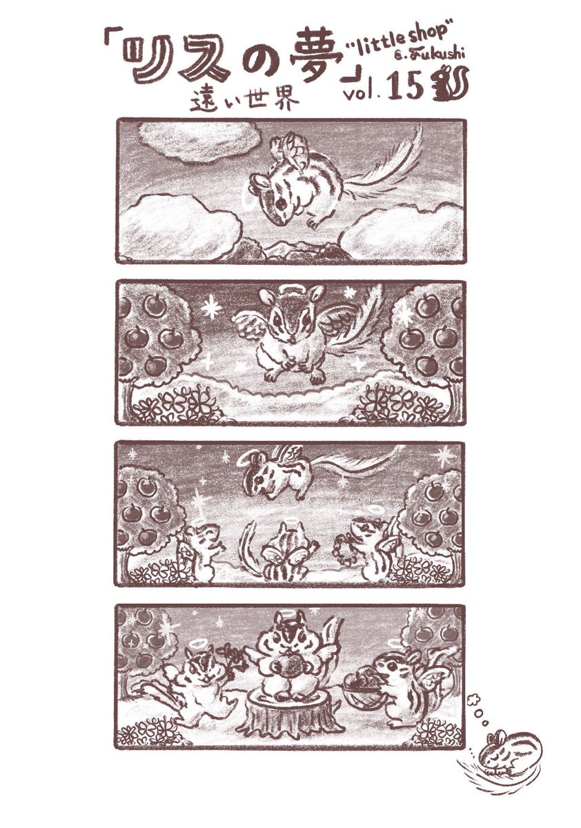 #1日1絵 過去の絵。#1月29日 マンガ「リスの夢」。 リスの天国はあると思います。 3枚目 りすカフェと「ラブほお袋」のおつかれさま会だった年も #リス #シマリス #イラスト #illustration #illustratior