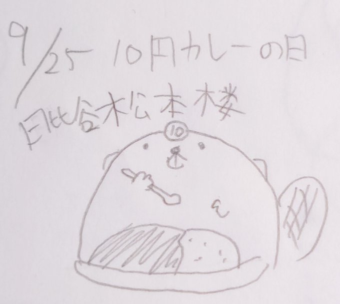 今日は何の日?17日目🦫 今日 #9月25日 は #10円カレーの日 🍛 日比谷松本楼が始めた10円カレーらしい おいしそう食べたいっ🍛🦫 #365日チャレンジ #らくがき #イラスト #illustration #アメリカビーバー #絵描きさんと繋がりたい #秋の創作クラスタフォロー祭り #sns秋の芸術祭2022