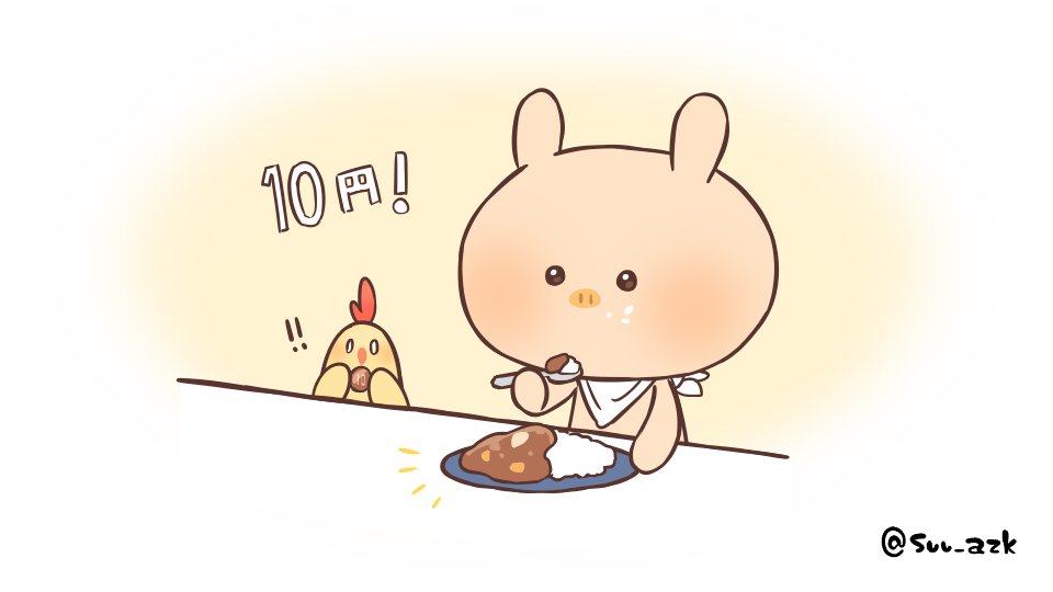 本日は「#10円カレーの日」にちなんで、腕によりをかけておいしいカレーを作ってます♪ こだわりが強すぎて、お客さまがダウン寸前です〜😵 #イラスト #今日は何の日 #絵描きさんと繋がりたい #イラスト好きさんと繋がりたい #ゆるいイラスト #illustration