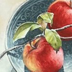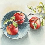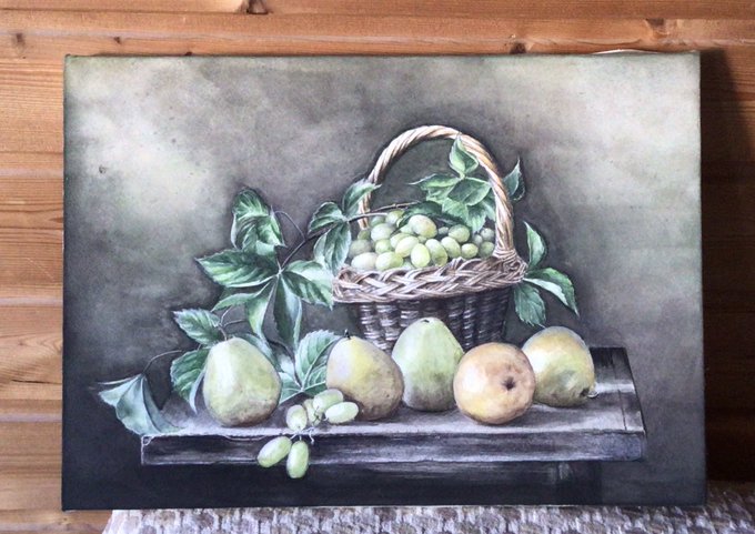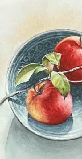 静物を描きました。 絵は 全体にもうちょっと オレンジがかってるんだけど 拾えませんでした🥺 「大胆にマスキングして 全体に黒を塗ったら絵を洗うんです。 濡れているうちに 色んな色を置くんですよ。」 あ 洗うんです??? #何言ってるかよく分からない 🔰 #10月の絵 #水彩画 5号