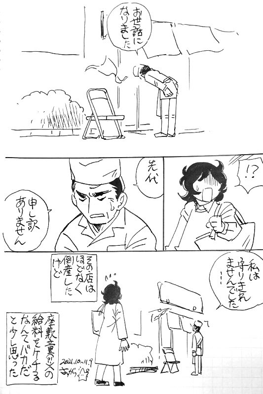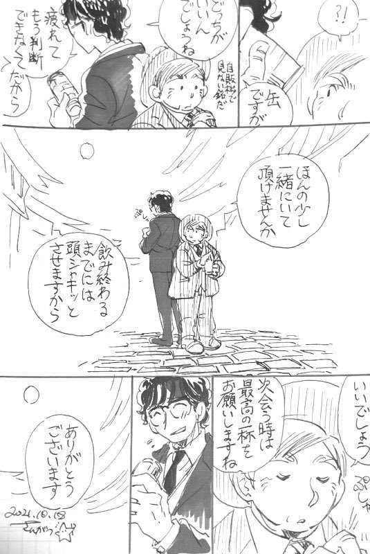 #inktober2021 #inktober #インクトーバー2021 #10月は鍛練の月 ロスタイム 22・OPEN 去年描けなかったネームから。喫茶アガツマ描きたい欲にかられて、まさかの今頃です_(:3」z)_ poipiku.com/6617/6166894.h… 前の漫画とドアの開く方向やOPENの札が違いますが、前とロケ地変わった、てことで_(:3」z)_