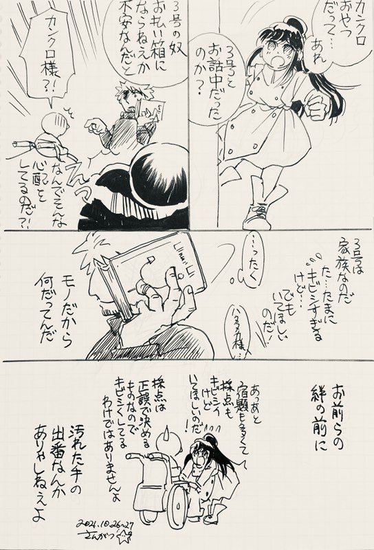 #inktober2021 #inktober #インクトーバー2021 #10月は鍛練の月 26.CONNECT 久しぶりの参加です。創作スターシステムというより #ふれずの勇者 パイロット版漫画 poipiku.com/6617/5507446.h… やっと3号の全身像が出せたぞー! 車椅子搭載コンピュータと合体され容量性能ブチ上がり魔改造擬人なのです