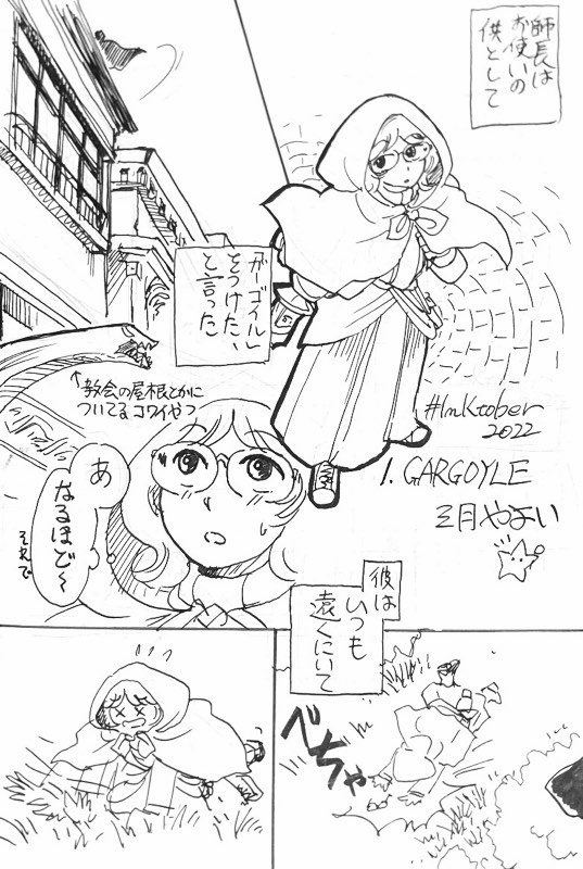#inktober2022 #inktober #インクトーバー2022 #10月は鍛練の月 1.GARGOYLE 雨どいの仕事もする怪物 poipiku.com/6617/7597251.h… 初日から日付変わっちゃった…後書きはあとで