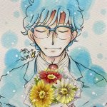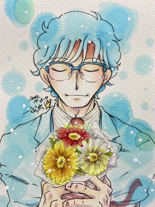 #inktober2022 #inktober #インクトーバー2022 #10月は鍛練の月 6.BOUQUET (感動させて泣いてる顔を卒アルに載せてやろうというイヤガラセのために)教え子がくれた花束 #コピック 穏やかな20代アガツマ先生、久しぶりに描いた気がする ポイピクに繋がらないので、あとでそっちにも上げておきます