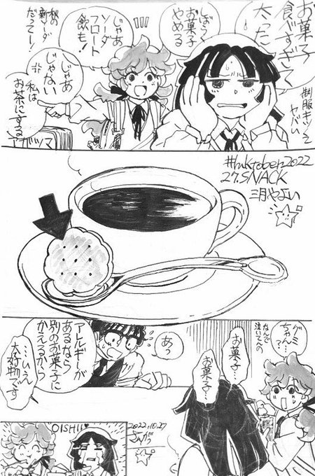 #inktober2022 #inktober #インクトーバー2022 #10月は鍛練の月 27.SNACK 今の私 poipiku.com/6617/7734220.h… 漫画1週間ぶりかーうひゃーネームも無しに一気に描き上げたぜイェー(テンションがおかしい)