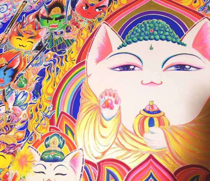 昼間&就寝1時間前作品制作中「薬師如来猫」微調整塗り中なので、昨日から、どこがどう進んでいるのか分からないですが進んでいます。東の極楽浄土だけど描いててキリがない地獄に突入中 #アナログイラスト #創作クラスタさんと繋がりたい #猫好きさんと繋がりたい #猫イラスト #10月個展