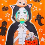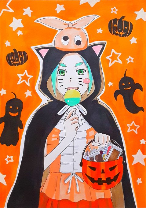 斧乃木余接 🎃ハロウィンバージョン 「トリック・オア・トリート。お菓子をくれないとイタズラしちゃうぜ。」 #10月15日は人形の日 #物語シリーズ #絵描きさんと繋がりたい #絵師さんと繋がりたい #イラスト好きさんと繋がりたい