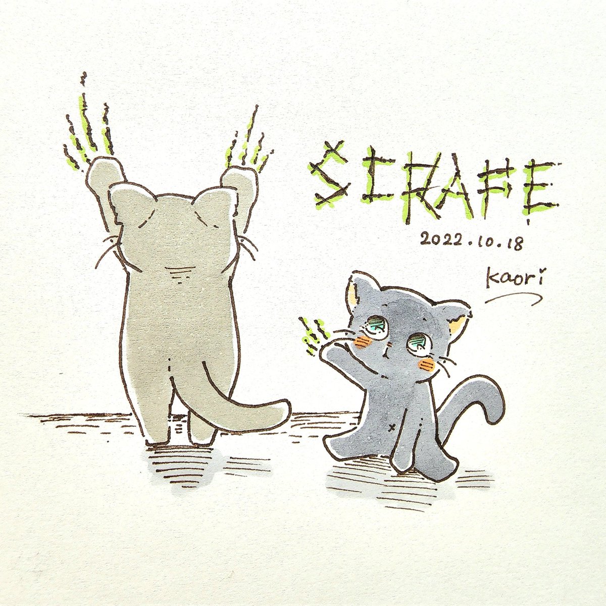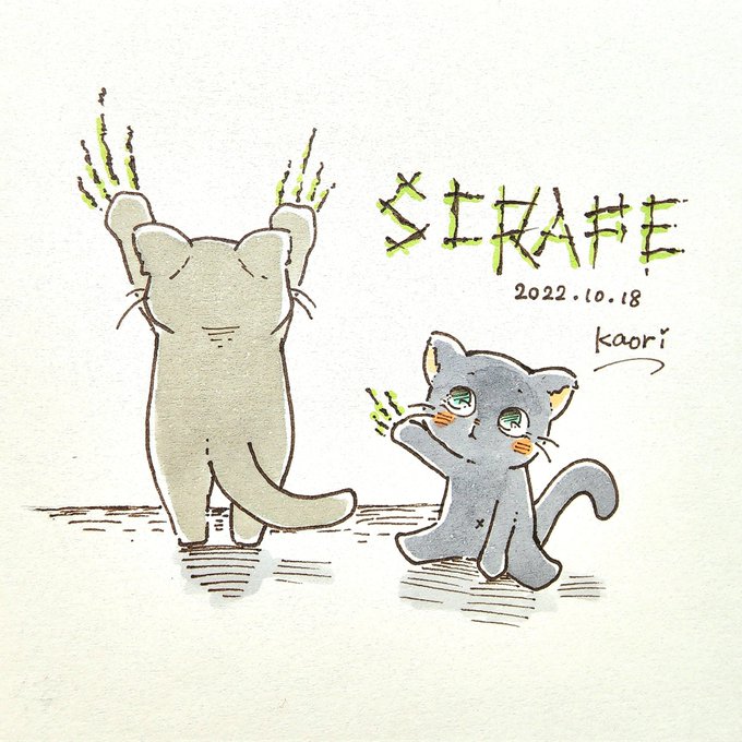 こすり落とす -SCRAPE- こすって傷をつけるという意味もあるみたい。 #inktober #inktober2022 #kuretake_inktober2022 #illustration #イラスト #猫 #cat #10月18日