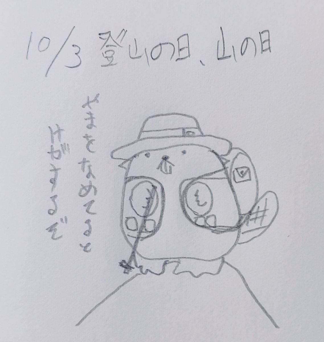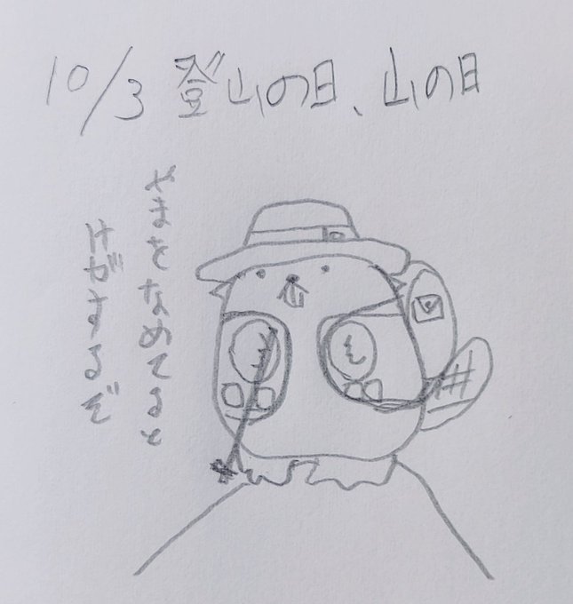 今日は登山の日 「と(10)ざん(3)」の語呂合せで日本アルパイン・ガイド協会の重野太肚二氏が発案し、1992年に制定されたそうです。 #今日は何の日 #1992年 #10月3日 #登山 #豆粒より小さいエレンw #イラスト #イラストのあるくらし #アートのあるくらし #yume.k #エレン #どれさぽ