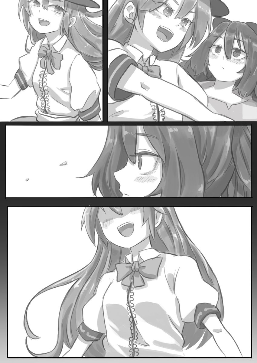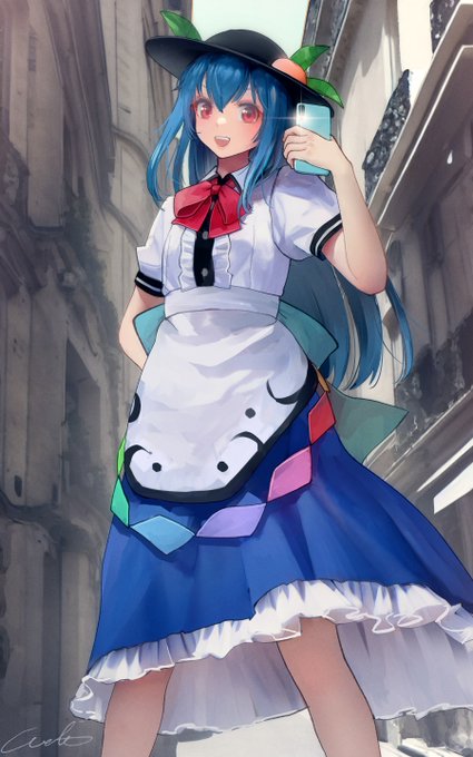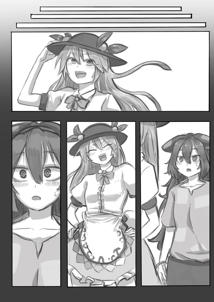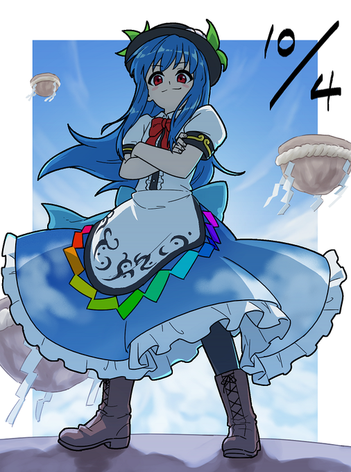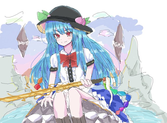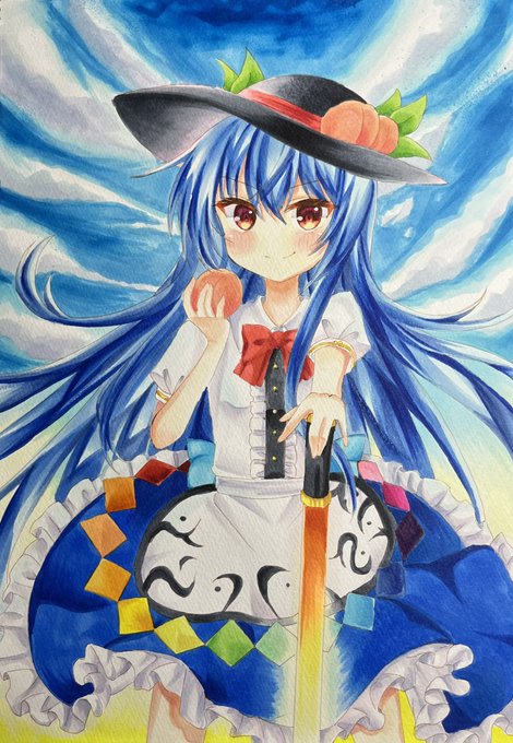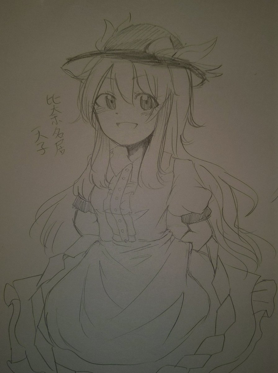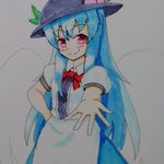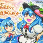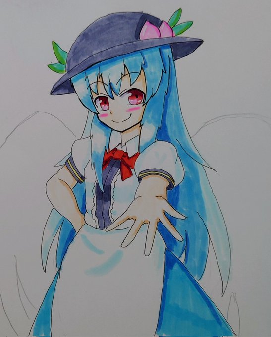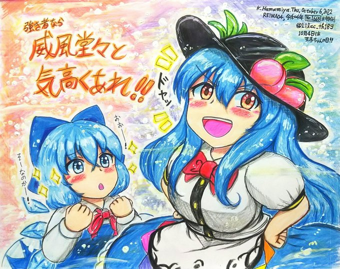 私のように偉くなりたい?🍑 ならばまず風格を磨くことよ! 胸張って堂々と勇ましく歩きなさい!✨ #チルノ #比那名居天子 #深夜の真剣お絵描き60分一本勝負 (東方版・1665回目参加・お題フリー) (※2月3日お題) #10月4日は天子の日