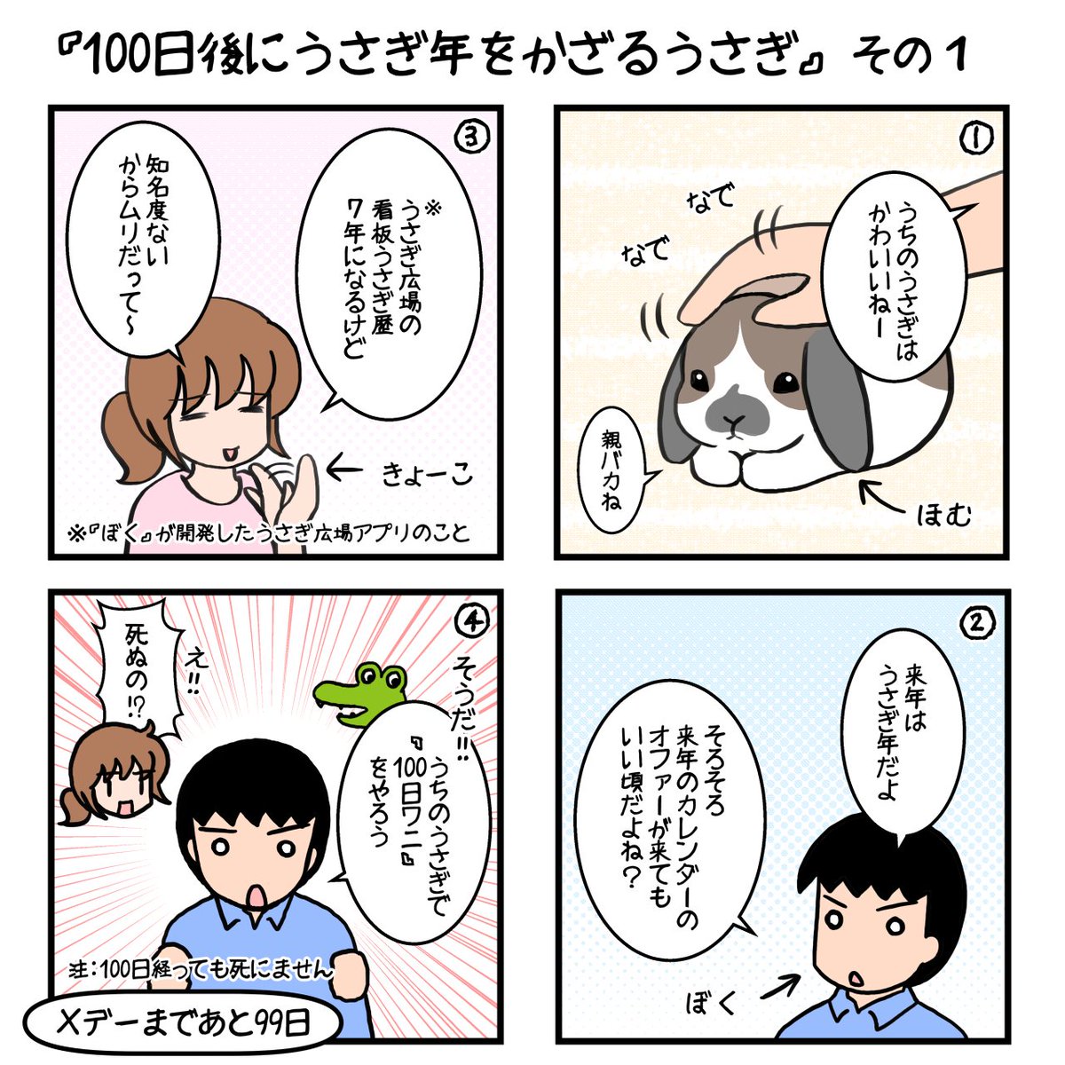 『100日後にうさぎ年をかざるうさぎ』その60 #100日うさぎ #100日後にうさぎ年をかざるうさぎ #漫画が読めるハッシュタグ #うさぎの手 #絵描きさんと繋がりたい #イラスト好きさんと繋がりたい