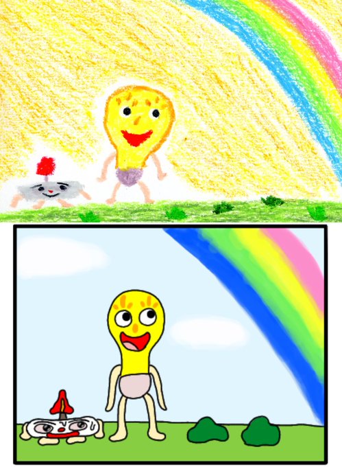 「キャンドルくんとライトくん」 絵本と四コマの比較 〈19〉 #絵本 #絵本ひろば #読み聞かせ #イラスト #雨上がり #虹 #絵本作家 #イラスト #アトリエの系譜 #絵描きさんと繫がりたい #落書き #100日後に消えるキャンドルくん #えほん #絵柄が好みって人にフォローされたい #漫画が読めるハッシュタグ