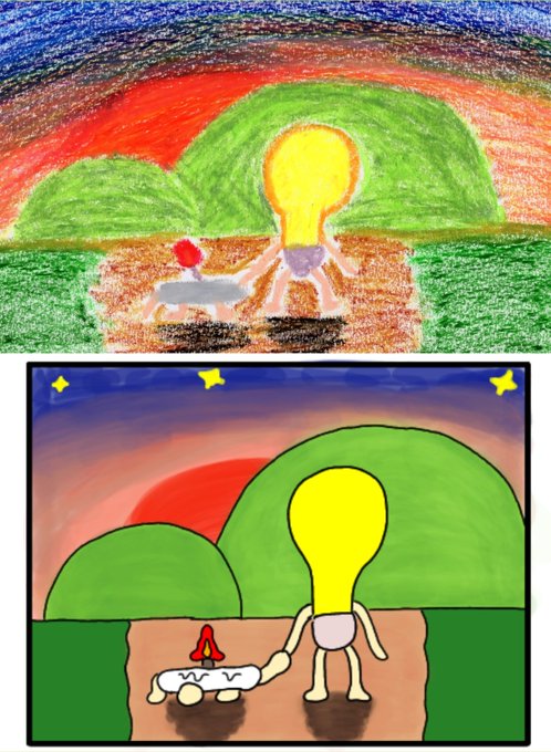 「キャンドルくんとライトくん」 絵本と四コマの比較 〈15〉 #絵本 #絵本ひろば #読み聞かせ #イラスト #クレヨン #絵本作家 #イラスト #アトリエの系譜 #絵描きさんと繫がりたい #落書き #100日後に消えるキャンドルくん #えほん #絵柄が好みって人にフォローされたい #漫画が読めるハッシュタグ